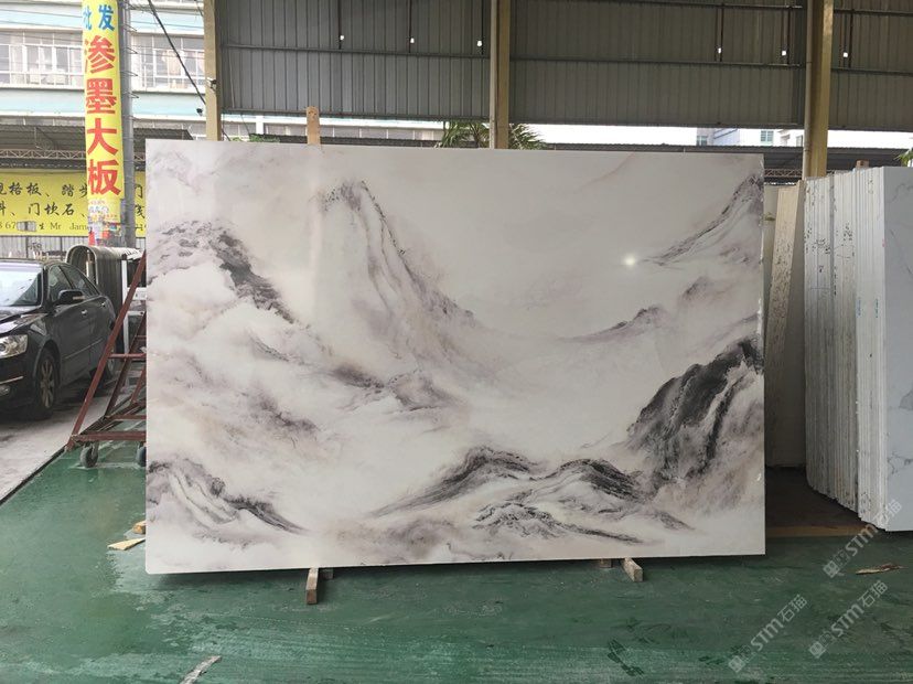 大量批發(fā),平價人造石,崗石線條,3D滲墨大板:爵士白,魚肚白,山水畫。