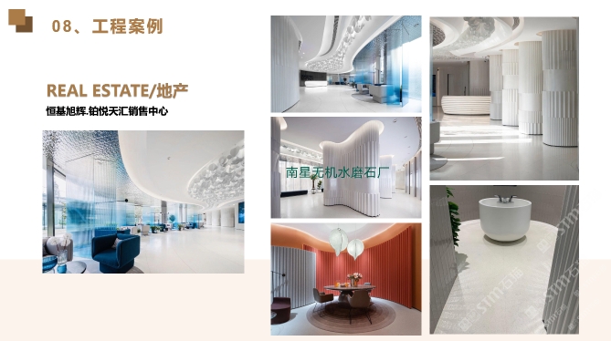 東星集團是國內(nèi)擁有40多年經(jīng)營歷史的大型石材全產(chǎn)業(yè)鏈生產(chǎn)運營投資的集團企業(yè)。下屬包括:南星大理石,東星人造石-無機水磨石,東星奢石,東星國際貿(mào)易,東星文旅,東星地產(chǎn)等。公司擁有龐大的加工生產(chǎn)能力、是保利、恒大、中海、綠地、萬達、星河灣、雅居樂等大型房地產(chǎn)企業(yè)的戰(zhàn)略合作伙伴。產(chǎn)品線覆蓋奢石、玉石、大理石、崗石、水磨石、花崗巖等產(chǎn)品。旗下東星無機水磨石廠主要生產(chǎn)無機水磨石/無機洞石及其它改性水泥預(yù)制產(chǎn)品。