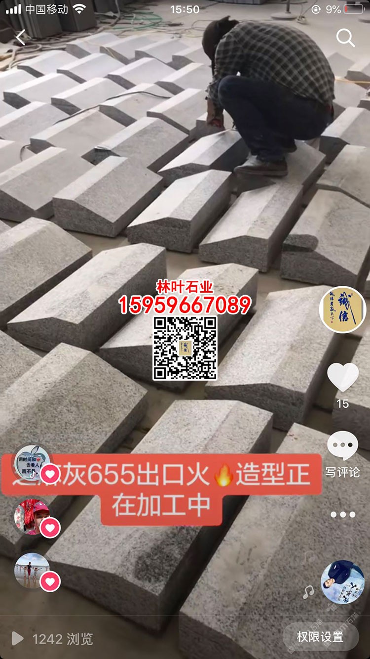 林葉石業(yè)長泰工廠(林總15959667089微信同號)專業(yè)老礦芝麻黑與芝麻灰供應(yīng)商,專注于出口及高品質(zhì)工程國內(nèi)外園林景觀石材;主營:老礦芝麻黑墓碑石、正礦吳田山G654窗臺板、G654芝麻黑牛鼻子、芝麻黑石材游泳池蓋板、老礦芝麻黑出口高品質(zhì)工程板、老礦654小方塊馬蹄石、芝麻灰G655路沿石、深灰麻石材、中灰麻石材、深灰色花崗巖、黑色麻石等光面、燒面、荔枝面、墓碑石材、地鋪石材、園林景觀工程、路沿石材等;林葉石業(yè)寧德工廠(葉總18050650127微信同號)專業(yè)新礦芝麻黑寧德小藍(lán)寶,廠礦一體,體格優(yōu)惠,真誠希望您的光臨與合作?。暶魃蟼鳟a(chǎn)品圖片均是本廠加工生產(chǎn))