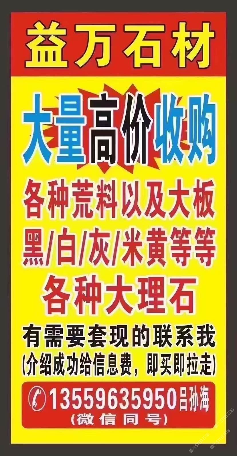 `【長期大量??高價求購】大板,荒料,多少量都可以;云多拉灰,奧特曼,白玉蘭,南斯拉夫白,溫德姆灰,星耀灰,保加利亞灰,奢石等各種大理石;需要:套現、清倉、換品種的速來,介紹成功給信息費,現收現拉!微信:13559635950呂孫海微信同號