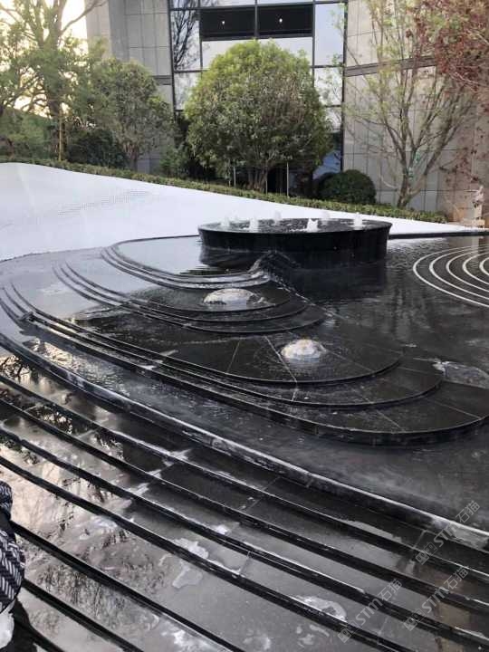印度黑金沙水景拼圖水池壓頂石黑金砂景觀園林工程案例