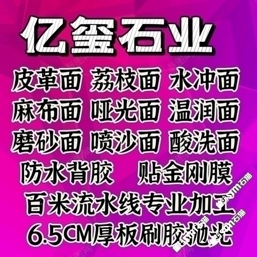 發(fā)布信息: 20年專業(yè)加工6.5CM厚板刷膠背網(wǎng)拋光 拉絲面 麻布面2500KG高壓水沖面 皮革面 自動金剛膜 絲綢面 荔枝面 酸洗面 噴沙面 溫潤面 啞光面磨砂面防水背膠掃描 水頭曾莊匯恒C5 17750877905