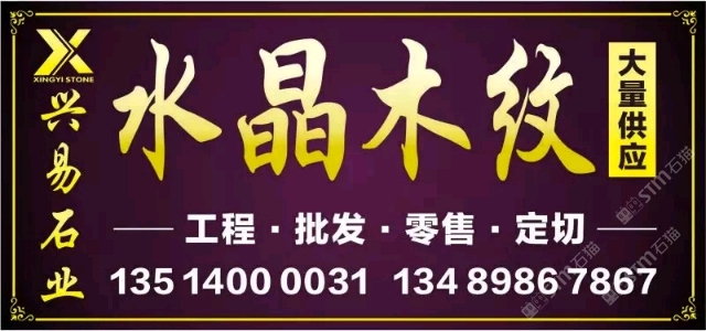 發(fā)布信息: 【興易石業(yè)】—-水晶木紋專場 水晶木紋系列:水晶木紋 白金沙 藍(lán)金沙、啡金沙、翡翠木紋 大量水晶木紋供應(yīng) 全部新料1.8厚度供應(yīng),歡迎新老客戶來電垂詢 我們專做、專注! 全場精品任選~ 地址:高時(shí)物流靠近一號(hào)館大門旁 ??:13514000031李 13489867867曾