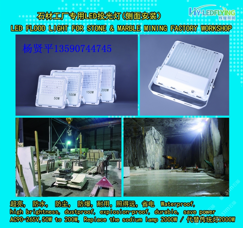 發(fā)布信息: 石材工廠和車間專用led投光燈,200瓦led可以代替3000瓦傳統(tǒng)燈,節(jié)能省電,質(zhì)保3-5年,防水,防爆,防塵,高亮度,楊賢平13590744745