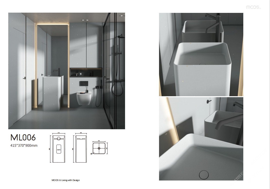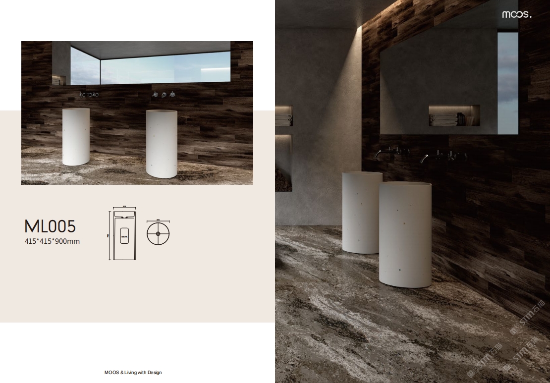 「MOOS魔石衛(wèi)浴」無機水磨石一體化臺盆設計