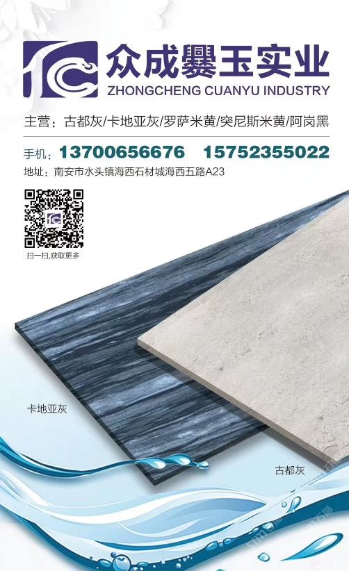 云南眾成爨玉實業(yè)有限公司 聯(lián)系人:譚先生    137****6676 查看 137****6676 查看 主營范圍: 大板批發(fā)、荒料、礦山、大理石加工、石材外貿、 企業(yè)地址:福建泉州南安市水頭鎮(zhèn)