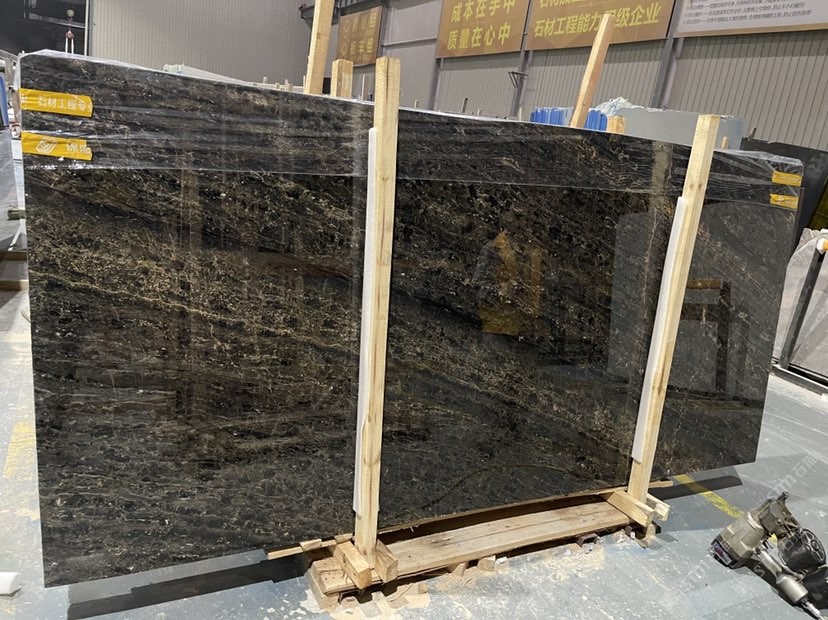 無染色,純天然,光度好的黑色帶金花大理石,適用于墻面,地面,臺階,洗手間,臺面等。