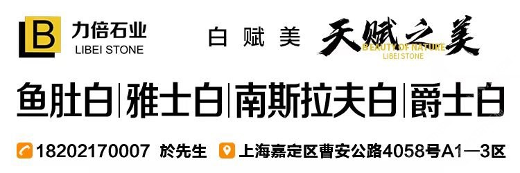 發(fā)布信息: 力倍石業(yè)主營石材: 雅士白 爵士白 魚肚白 南斯拉夫白專場 等多種白色高端石材 設計師白色石材 高端大氣上檔次 低調奢華有內涵 需要的朋友聯(lián)系下方財富熱線 財富熱線18202170007(於總) 地址 上?!贤?~宜興 均可提貨