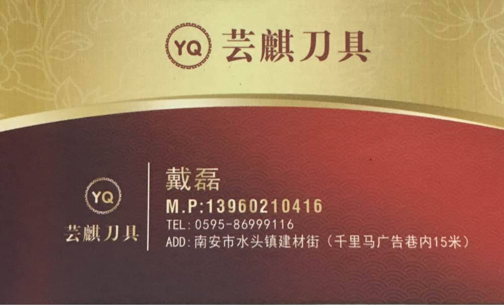 蕓麒刀具 聯(lián)系人:戴磊    139****0416 查看 手機(jī)號碼:無 主營范圍: 其他、 企業(yè)地址:福建南安水頭鎮(zhèn)建材街千里馬廣告巷內(nèi)