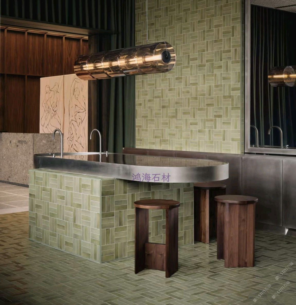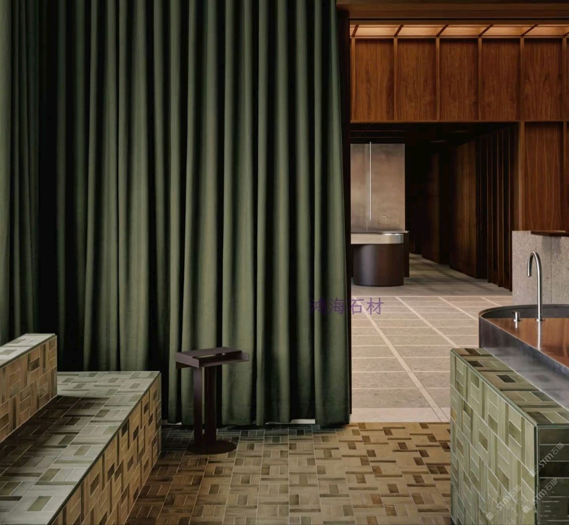 發(fā)布信息: 鴻海石材為皮膚科診所打造差異化空間,突破傳統(tǒng)醫(yī)療場所冰冷刻板的局限。設(shè)計(jì)融入金屬格柵與無機(jī)環(huán)氧水磨石等材質(zhì)形成呼應(yīng),滑動(dòng)穿孔面板實(shí)現(xiàn)醫(yī)療與咖啡休閑區(qū)的靈活切換,深綠窗簾、紅色絲絨座椅與綠色水磨石交錯(cuò)鋪貼,營造出堪比高端水療中心的溫潤療愈氛圍。