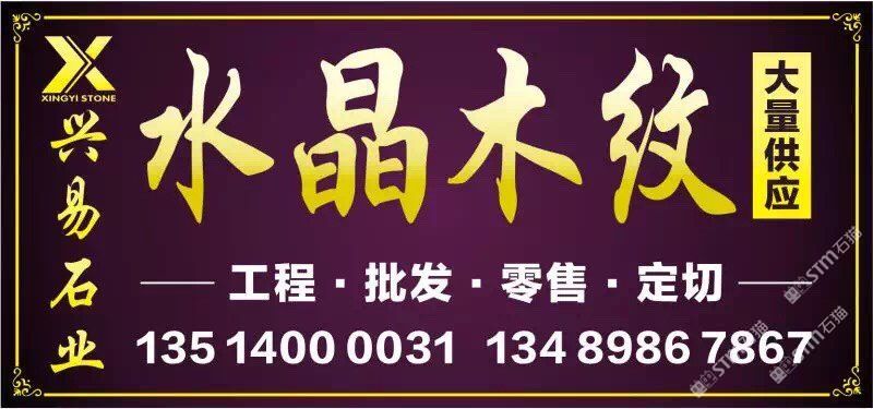 發(fā)布信息: 【興易石業(yè)】—水晶木紋專場 年末鉅惠,互惠互利 全場大板特價出售 58元起??! 我司專營水晶木紋系列產(chǎn)品:水晶木紋,啡金沙、翡翠木紋。新.白金沙.藍(lán)金沙 工程訂單-零售家裝-單件-單片均可銷售 電話:13514000031 13489867867 銷售點: 高時物流靠近一號館大門右手路