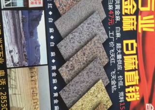 山東保利石業(yè)有限公司主營產(chǎn)品:山東黃金麻,山東黃金麻(光面),山東白麻,山東白麻1,章丘灰,石島紅(新8號),新石島紅(荔枝面),新石島紅(光面),櫻花紅,白麻企業(yè)地址:山東煙臺萊州是夏邱鎮(zhèn)