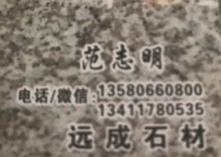 山陽石材主營產(chǎn)品:虎皮白,天鵝白,G655 (1),同安白,山水石1,維斯康白,象牙白1,象牙白(火燒面),象牙白(荔枝面),黑天鵝,德黑蘭(印度),愛琴海2,G655,吉林白,鐵灰,海藍(lán)寶,德黑蘭,鐵灰(印度)企業(yè)地址:福建南安水頭鎮(zhèn)后房工業(yè)區(qū)新加坡加油站對面100米山陽石材